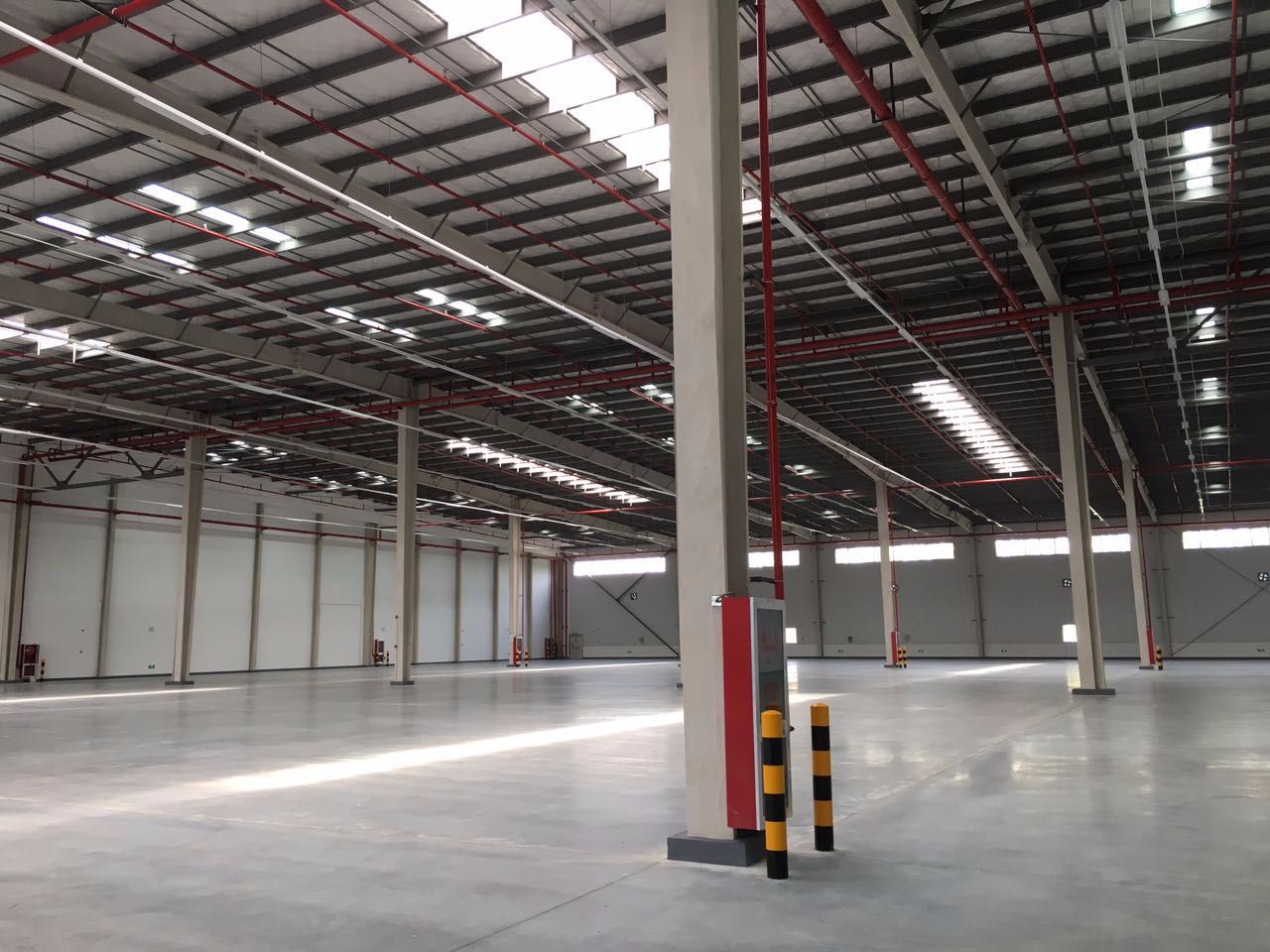仓库规格:正规工业园75000平米高标库,仓库单体面积4000㎡-6000㎡;净高度9m,为单层钢混仓库。仓库设计为单面卸货高台,卸货平台高1.3m,单个防火分区配有2-3个卸货平台及液压提升门,提升门尺寸:2.75mX3.5m;操作场地宽30m或45m;仓库地面采用防裂、耐磨、防尘地坪;库内地面承重3T/㎡;柱间距12mX25m;库内光照150~200lux,自然光率不低于4%;卸货门上设有8米宽的雨蓬。