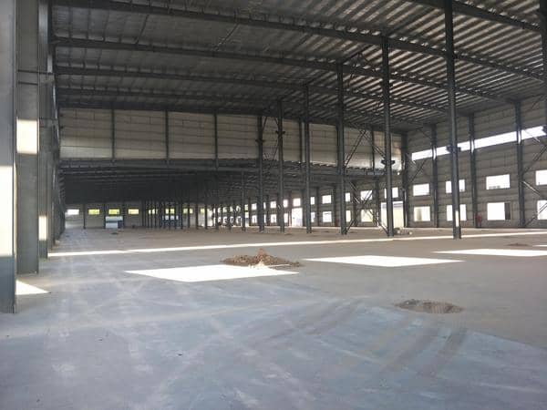厂房总面积11000平米,长180米、宽60米,檐高12米,顶高19米,可以安装10吨天车.