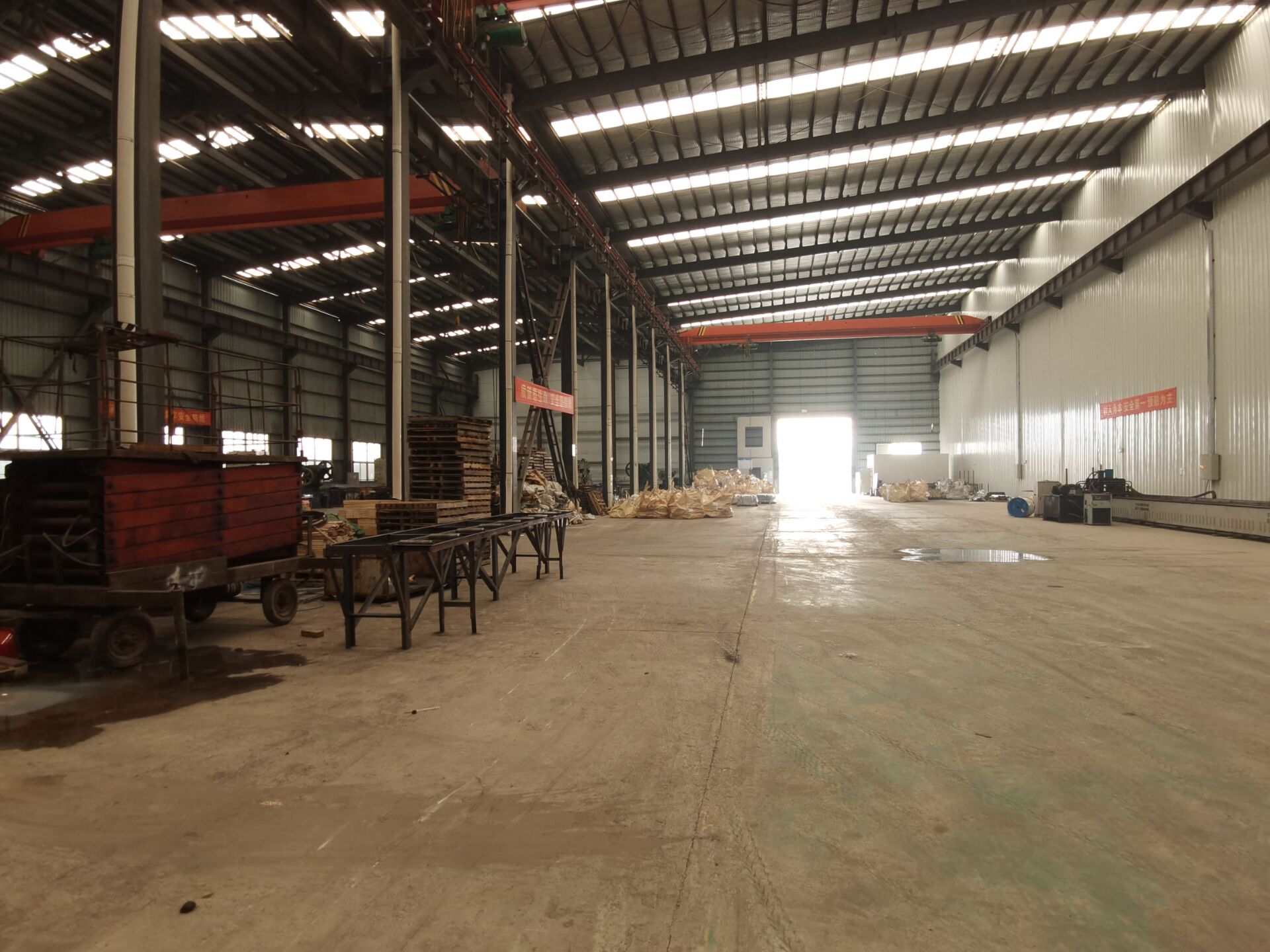 3.车间面积3600平米,层高15米,带4部天车。办公区域和车间分离,做到安静办公,办公区域2层,共200多平。层高3米。