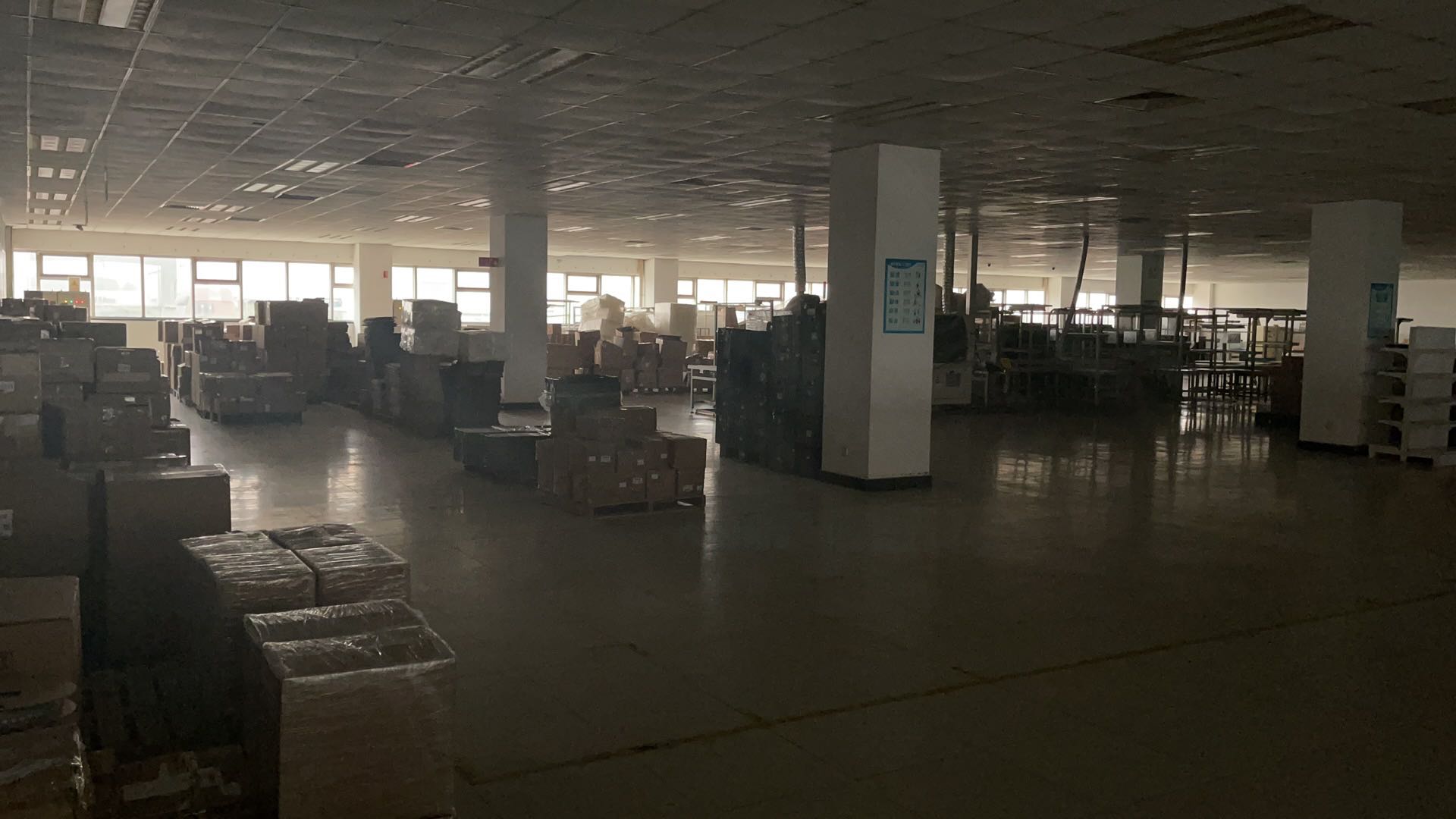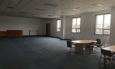 5、二期办公楼:四层、1楼食堂在用、层高4.2米(吊顶后3.1米);2-4层空闲、2-4层层高3.6米,总面积5000平米,每层1250平米(其中食堂502米)。2-4层每层约19-30个办公室出租,面积38㎡~76㎡。有隔断可打通。