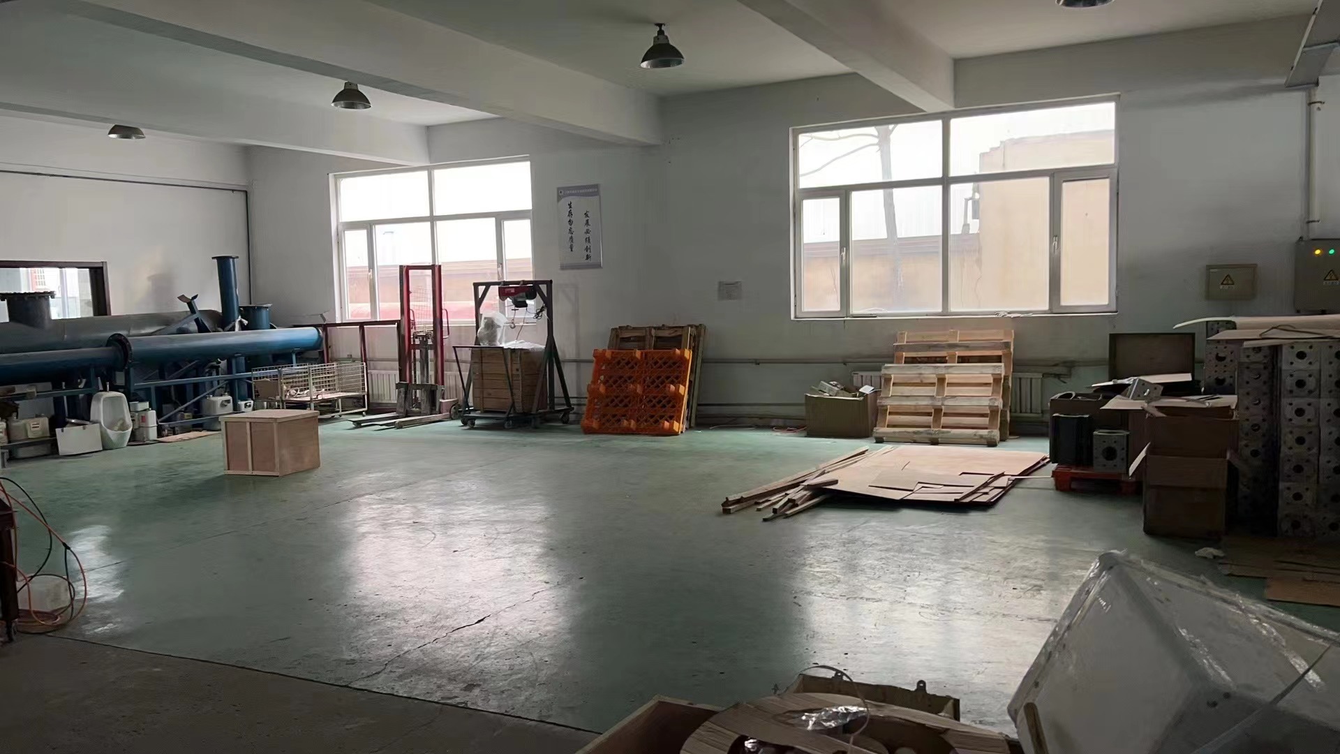 两层楼房,每层均可用于生产+办公,单层层高3.7米,独立水电(380v+220V),4个独立卫生间,方便使用。现有机加工设备及组装生产线,可用可清。有货梯。适合高科技企业入驻。有燃气采暖锅炉,办公区及二楼车间为地暖,一楼车间有暖气片。院内有门卫,厨房及宿舍、食堂。