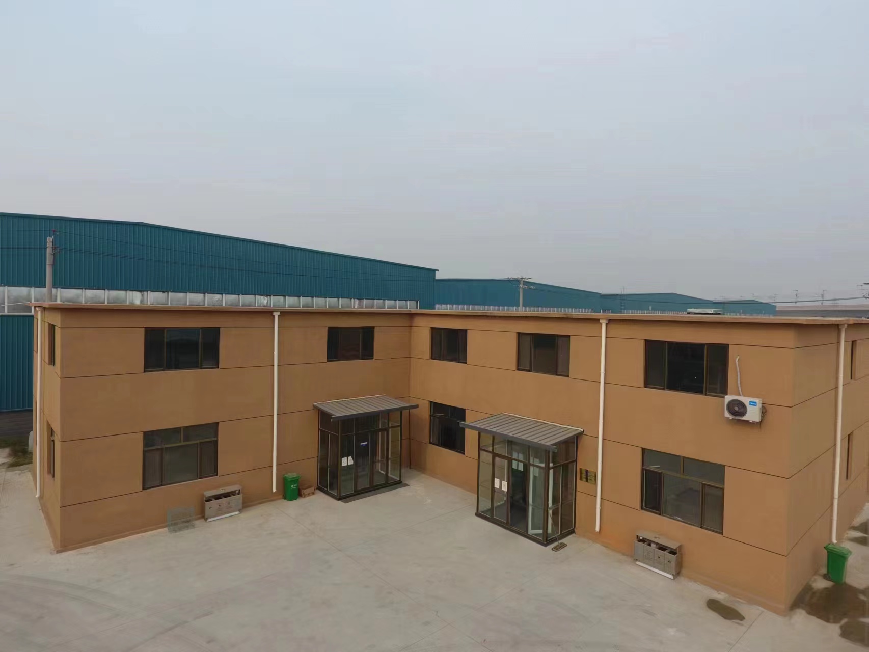厂房占地30亩(集体建设用地),为独立独院厂房;6米高钢架厂房三套(每套约2000平)共计6000平;配套二层实验室办公楼1000平米,配套会议室、研发、实验室等;建筑物占地15亩;另外水泥硬化停车场(空场地)共计15亩。