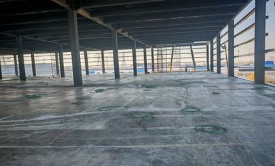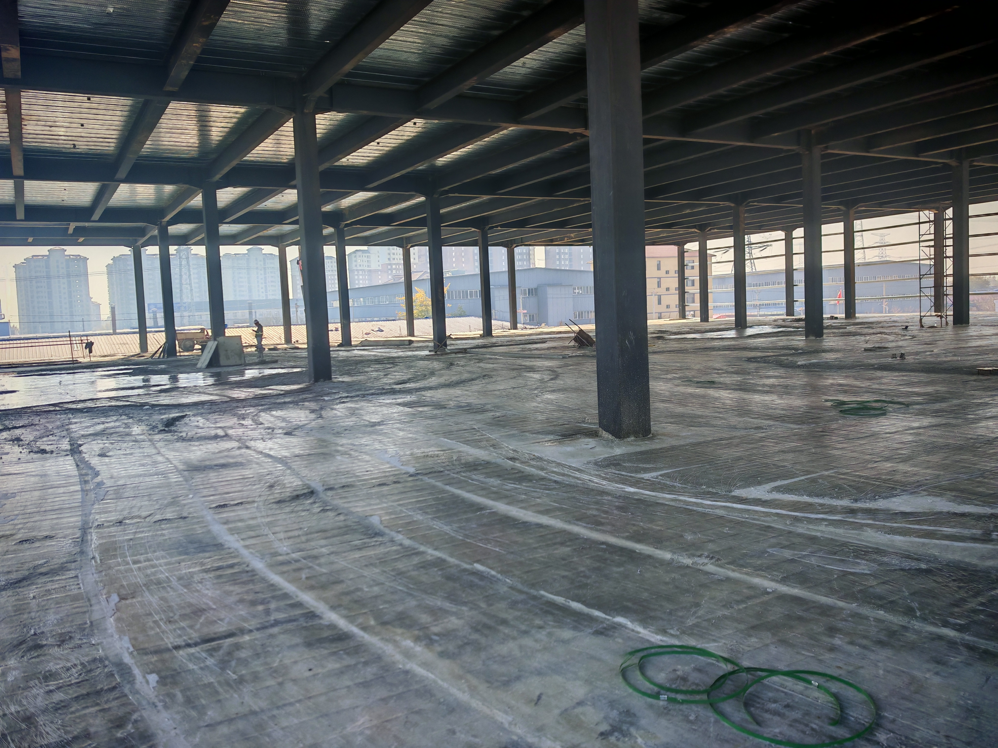 厂房占地面积15000平米,分为3层,每层5000平米,一层层高8米,二层三层层高6米,配有办公住宿500平米,